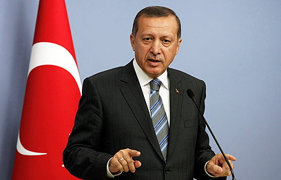 Turkish warships will escort any Turkish aid vessels to Palestinians in the Gaza Strip, Prime Minister Recep Tayyip Erdogan said in an interview with Al-Jazeera television on Thursday. "Turkish warships, in the first place, are authorized to protect our ships that carry humanitarian aid to Gaza," Erdogan said in the interview. "From now on, we will not let these ships to be attacked by Israel, as what happened with the Freedom Flotilla." More on the Israel-Turkey diplomatic crisis Erdogan also said that Turkey has taken steps to "stop Israel from unilaterally exploiting natural resources from the eastern Mediterranean." Israeli Foreign Ministry spokesman Yigal Palmor responded to the Turkish premier' statement by saying: "This is a statement well-worth not commenting on." Senior Jerusalem sources said Thursday night that Erdogan seems to have "lost his senses." Other sources stressed that the Turkish premier's threats will not affect the IDF's enforcement of the Gaza blockade. "Erdogan may face trouble from NATO and the US – they will not take kindly to his threats against Israel, which has excellent relations with NATO. "Israel is not dismissing Turkey's threats, but NATO is likely to disapprove of the fact that one of its members is conducting itself in such a problematic, menacing fashion," once source said. Another Jerusalem source noted that "it seems that Erdogan is adamant on dragging Israel into a public, diplomatic conflict… We won't allow that to happen. There is no telling where the situation is going, but we hope this will all blow over." As for the Turkish PM's escalating rhetoric, the source said that "today, Turkey is very much a one-man state. There is no telling what his next move will be." Concerning rhetoric. Erdogan (Photo: Reuters) Jerusalem is trying to deploy covert diplomatic efforts vis-à-vis Ankara, in which the US and Europe are involved. House Foreign Affairs Committee Chairwoman Ileana Ros-Lehtinen (R-FL) and 15 other American legislators has recently met with Turkey's ambassador to Washington, in an attempted to mediate between Ankara and Jerusalem. "We are constantly holding situation assessments. This is a new reality and we have to deal with it," a high-ranking political source told Ynet. Earlier Thursday, a military source told an Egyptian website that Turkey is expected to hold naval military maneuvers with Egypt in Turkey's territorial waters at the end of the year. Erdogan will visit Egypt next week as part of a regional tour and is expected to sign several trade and military agreements with Cairo. Turkey is a prominent member in NATO and "Egypt is determined to hold the maneuvers in spite of its current political climate," the source told the website. While in Egypt, Erdogan will meet with Egyptian Prime Minister Essam Sharaf, Defense Minister Mohammed Hussein Tantawi and other top officials. According to Egyptian media, a mission of high-ranking Turkish officials will accompany Erdogan, including Foreign Minister Ahmet Davutoğlu, Ankara's trade minister and several prominent businessmen. Meanwhile, a senior Israeli military official told the Associated Press that the IDF has deployed drones over the Israel-Egypt border. According to AP's source, the IAF deployed a special unit of unmanned surveillance aircraft along Israel's long border with Egypt as a terror-prevention measure, after terrorists infiltrated the border and killed eight Israelis in August. The drones are said to be monitoring both sides of the 150-mile border, though the aircrafts are keeping solely to Israeli airspace. Israel has grown increasingly concerned about the security situation in Egypt's Sinai Peninsula following the ouster of longtime Egyptian President Hosni Mubarak in February. Attila Somfalvi, Roi Kais, Roee Nahmias and AP contributed to this report